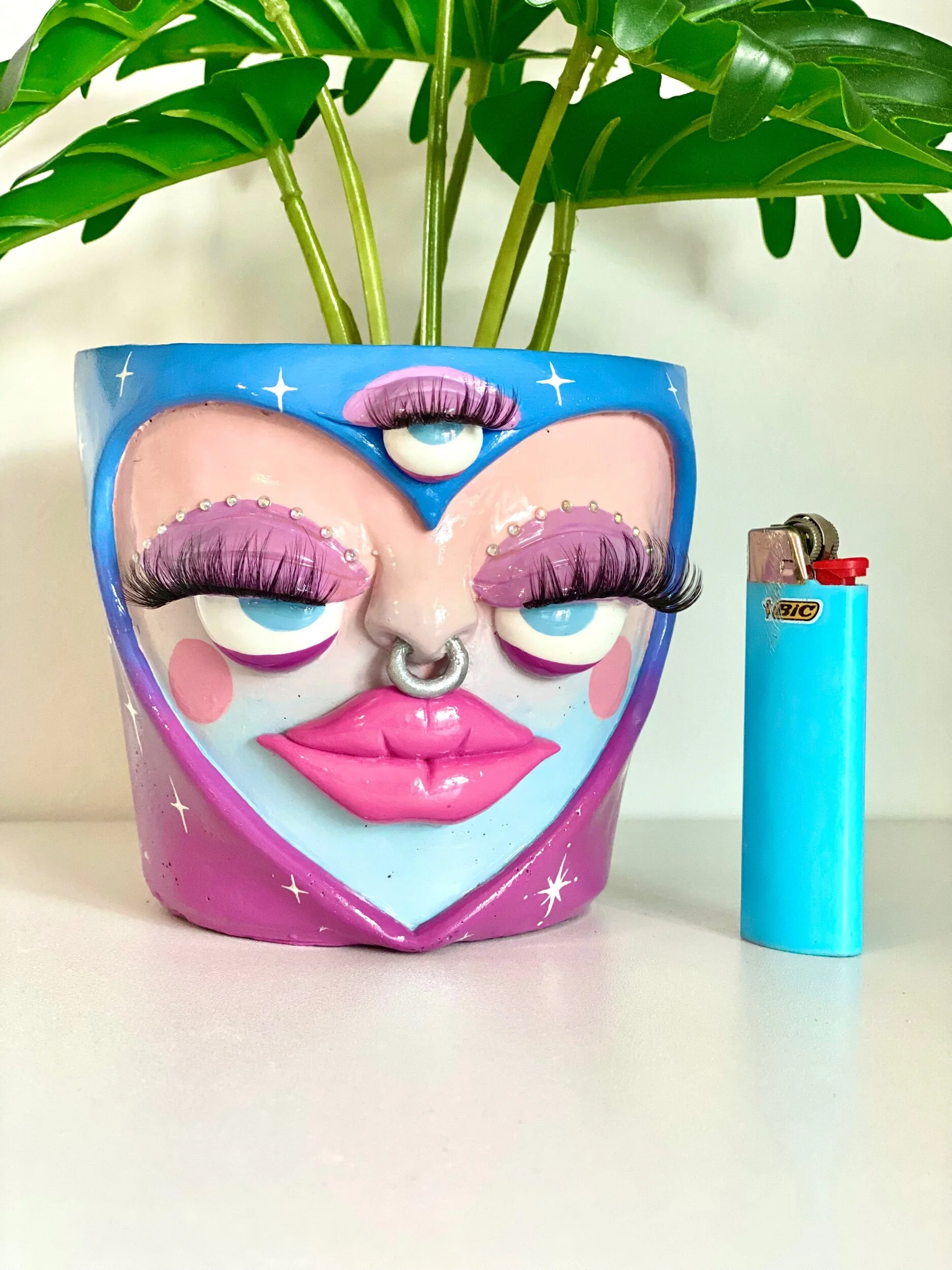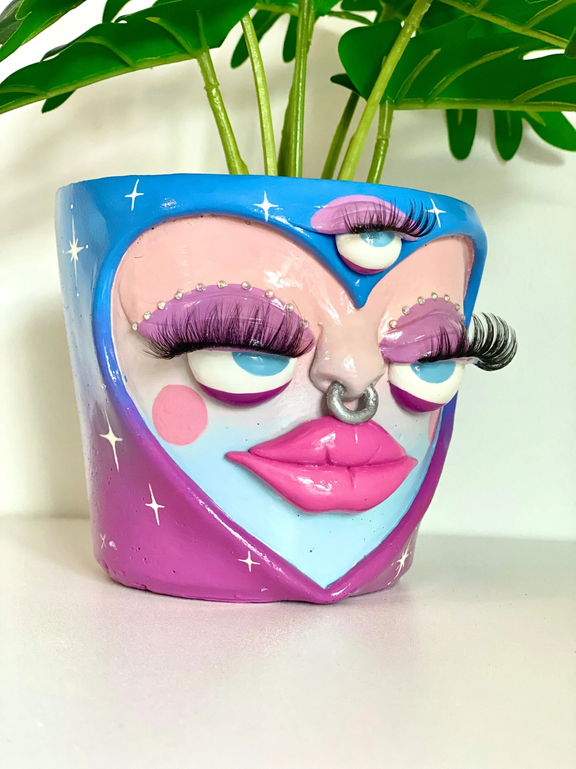 Made with a cement base pot with a drainage hole. For indoor use only. Plant not included.