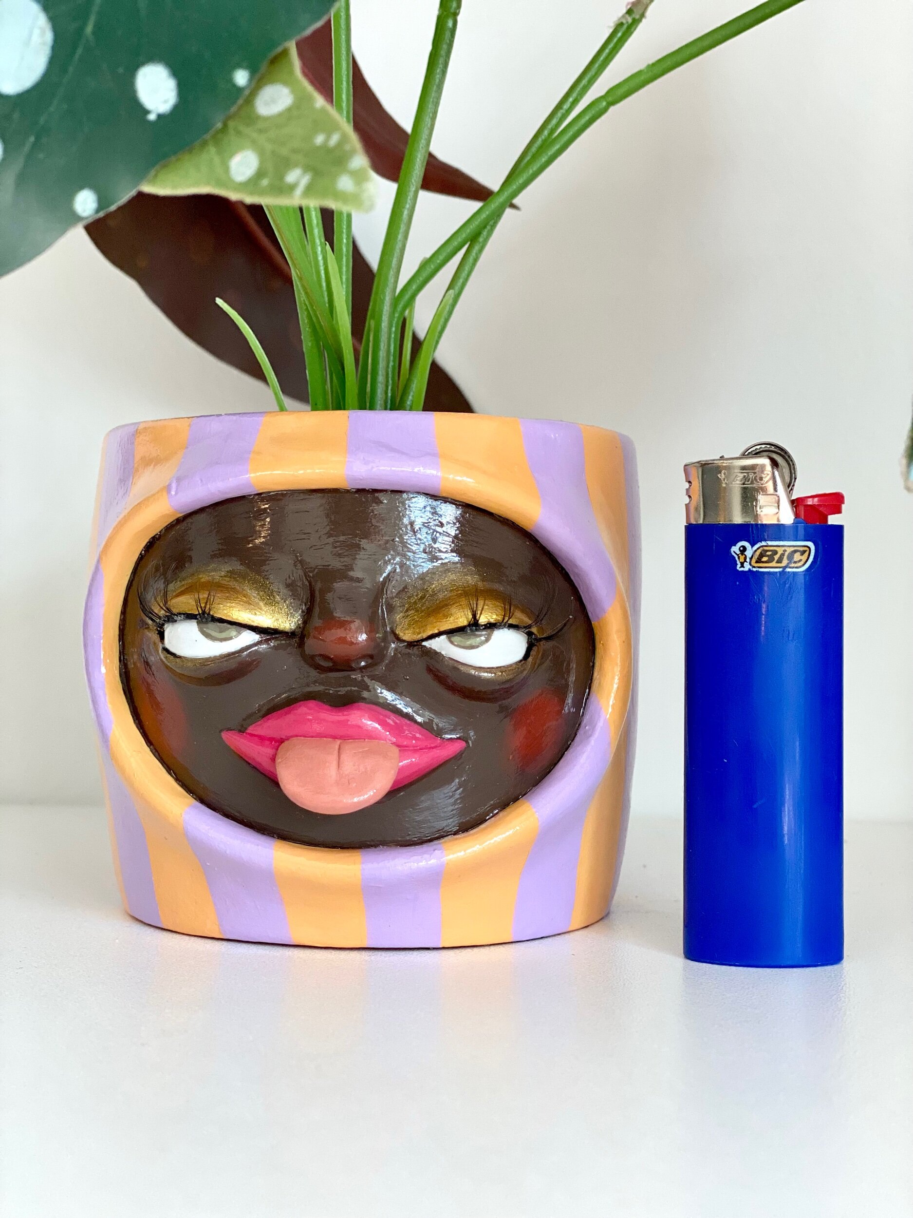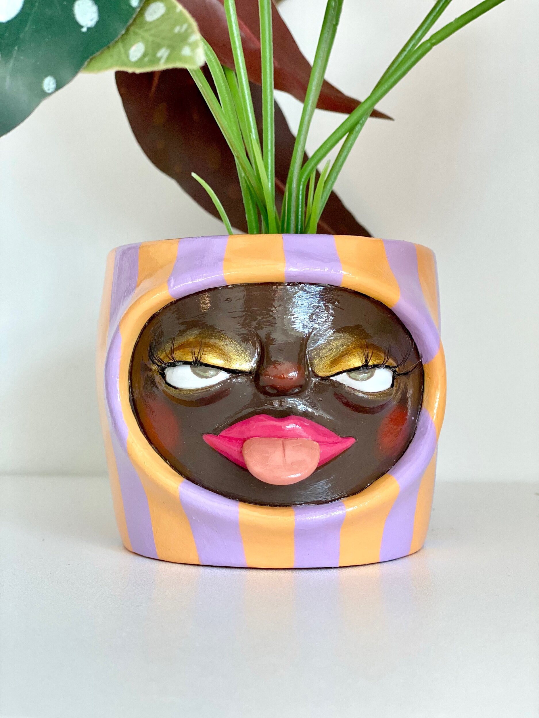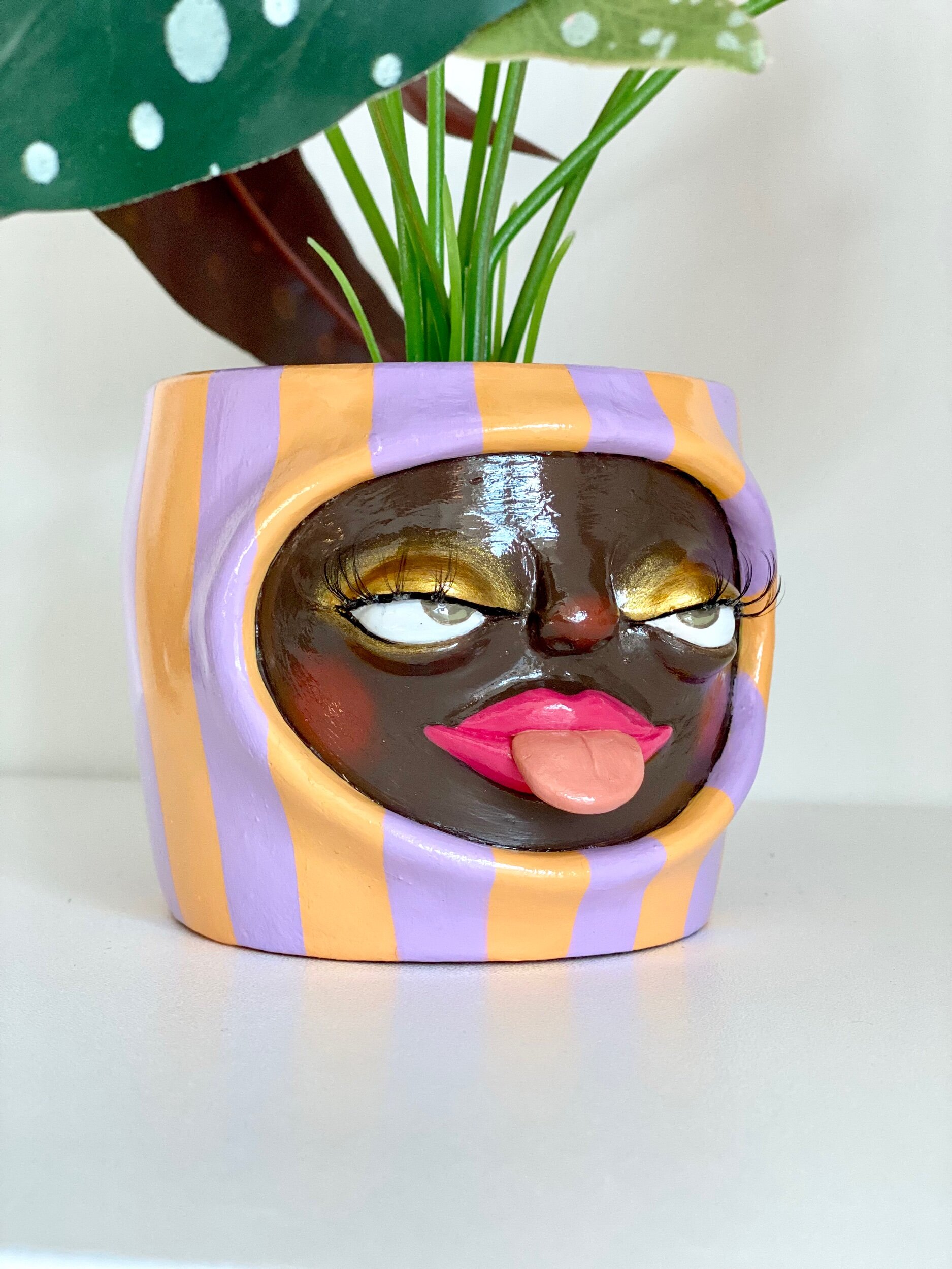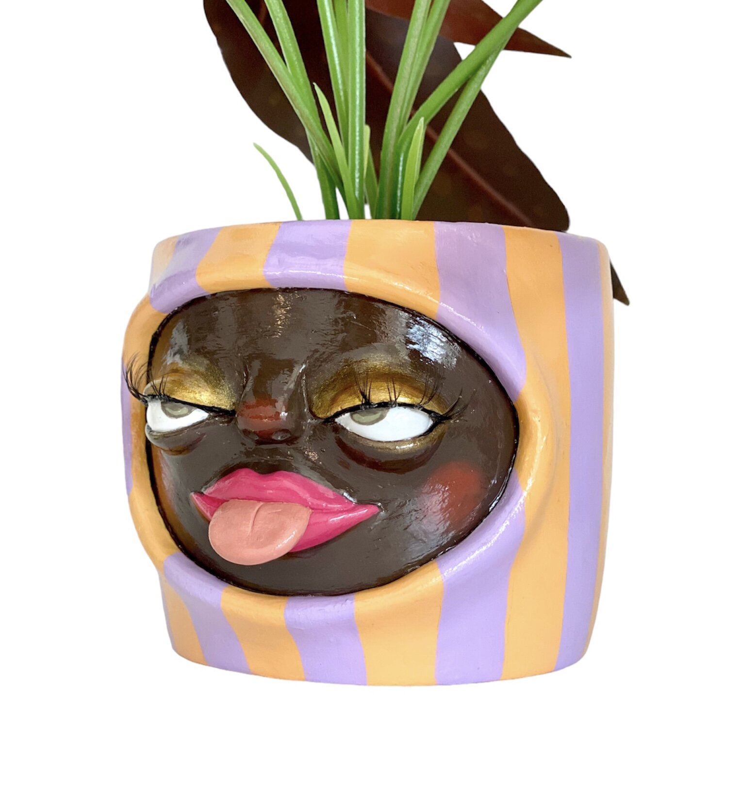 Image 1 of 8 Image 2 of 8 Image 3 of 8 Image 4 of 8 Image 5 of 8 Image 6 of 8 Image 7 of 8 Image 8 of 8 The Alisha $85.00 Sold Out Sold Out Added! A cement planter with a drainage hole on the bottom. Hand painted with a gloss finish. Size: 3.75” wide, 3.25” tallPlant not included. Indoor use only. Reviews Reviewer Name Review Date Star Rating Description Posted on Etsy Product Show More You Might Also Like Quick View Six Legged Freak Sold Out Quick View Disco Bitch - Pale Face Sold Out Quick View Clowny Carol Sold Out Quick View The Leena Sold Out Quick View The Addie Sold Out